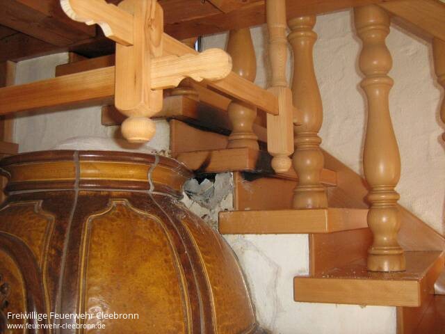 Noch rechtzeitig bemerkt hat eine Bewohnerin am Montagmorgen, gegen 10 Uhr, einen Brand in ihrem Wohnhaus in Cleebronn. In dem Gebäude im Traminerweg gab es vermutlich einen Hitzestau im oberen Bereich des Kachelofens. Dadurch, so die momentane Vermutung, entzündeten sich die hinter dem Ofen vermauerten Stufen der ins Obergeschoß führenden Holztreppe. Die Frau sah den austretenden Rauch und die ersten aus der Wand schlagenden Flammen. Die alarmierte Feuerwehr von Cleebronn brachte den Brand rasch unter Kontrolle. Unterstützt wurden die Cleebronner Einsatzkräfte von der Freiwilligen Feuerwehr Brackenheim, die mit der Drehleiter anrückten. Die Bewohnerin musste wegen eines leichten Schocks vom Rettungsdienst ins Krankenhaus gebracht werden.