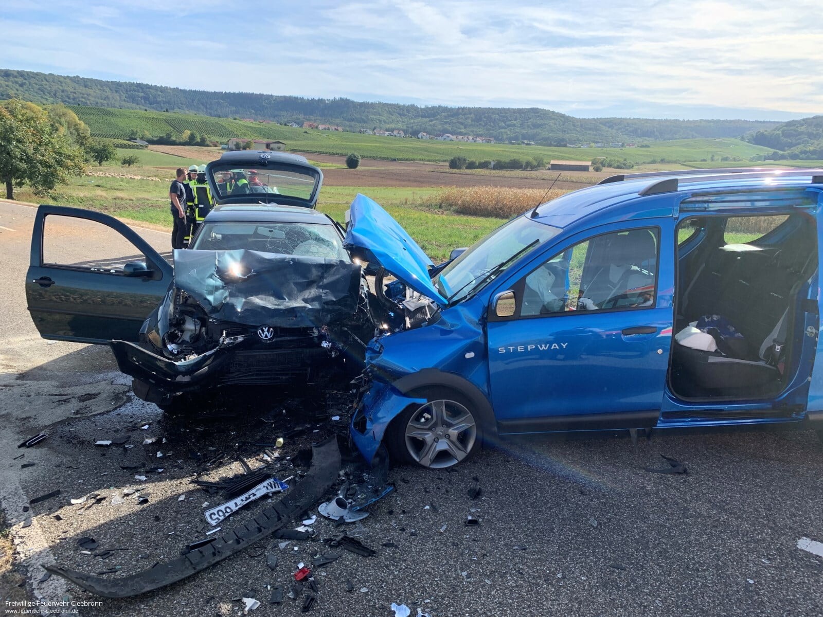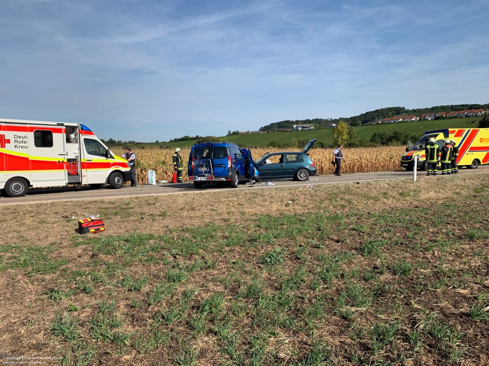 Beim Eintreffen der ersten Kräfte an der Einsatzstelle wurde festgestellt, dass es zwischen 2 PKW zu einem Frontalzusammenstoß gekommen war. Der Rettungsdienst war bereits vor Ort und betreute die insgesamt 4 verletzten Personen, die glücklicherweise nicht in den Fahrzeugen eingeklemmt waren.