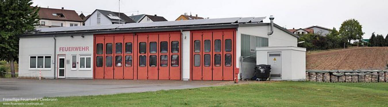 Das Feuerwehrhaus war früher ein Autohaus und wurde 1991 von der Gemeinde gekauft und umgebaut. Das Baujahr schätzt Bürgermeister Thomas Vogl auf Ende der 1970er-/Anfang der 1980er-Jahre. Die Freiwillige Feuerwehr Cleebronn hat zurzeit 36 aktive Mitglieder.